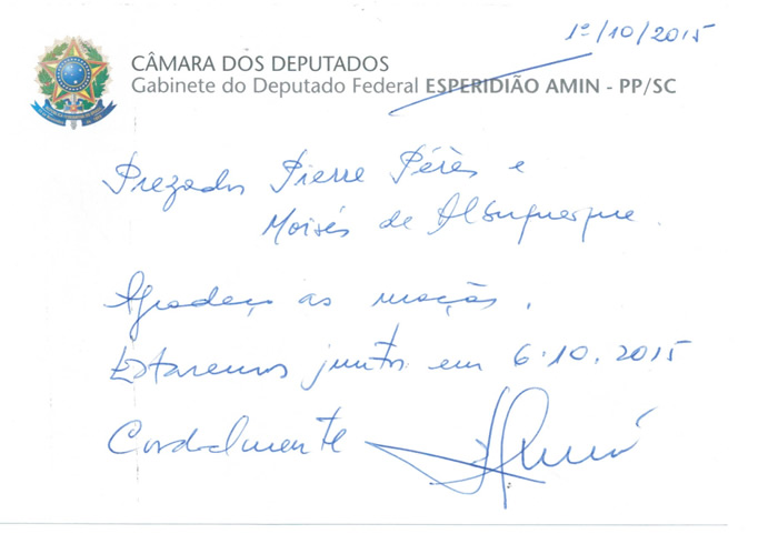 15 out 01/10 – Mensagem à ABPM de Esperidião Amin – Deputado Federal Postado às 17:39h em Maçã é tudo de bom por ABPM 0 Comentários 0 Curtidas Tags: ABPM Audiências com Autoridades, Apoiadores Setor, China