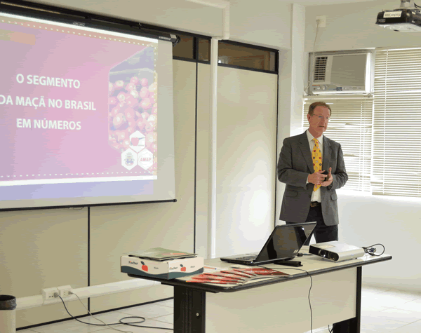 para auditório onde o Sr. Pierre Nicolas Pérès, Presidente ABPM, destacou a importância econômica do Segmento da Maçã para o Brasil, uma