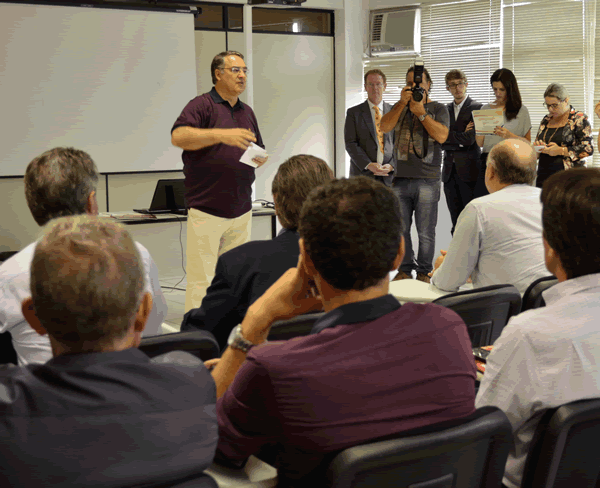 Mariozan Correia – Presidente da Coopeserra Cooperativa Regional Serrana e Diretor Administrativo Financeiro ABPM, Ivanir Dalanhol – Representante da Frutipar – Associação dos Fruticultores do Paraná – FRUTIPAR e Diretor Técnico e Qualidade ABPM, Sálvio Proença – Presidente da Associação dos Produtores de Maçã e Pera de Santa Catarina – AMAP e Diretor Social ABPM, Flávio Panho – Diretor da Associada ABPM Panho Frutas Ltda.