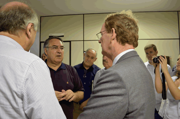 Governador Raimundo Colombo, Sálvio Proença – Presidente da AMAPA, Pierre Nicolas Pérès – Presidente ABPM: entrega do documento com pleitos do  Setor Maçã.