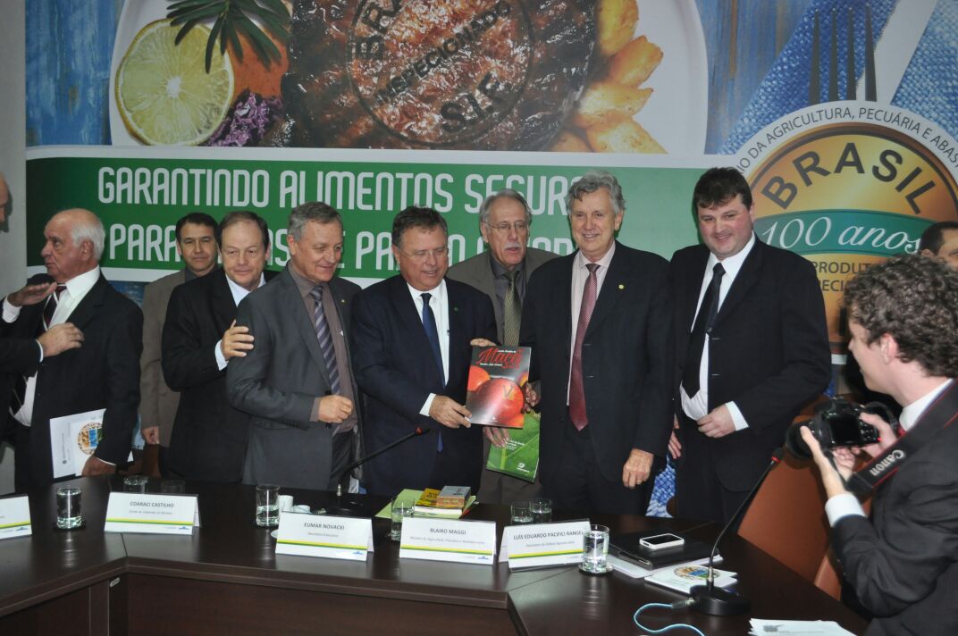 Ministro Blairo Maggi recebe informações de importância do Segmento da Maçã, acompanhado de equipe da Secretaria de Política Agrícola e Defesa Agropecuária.
