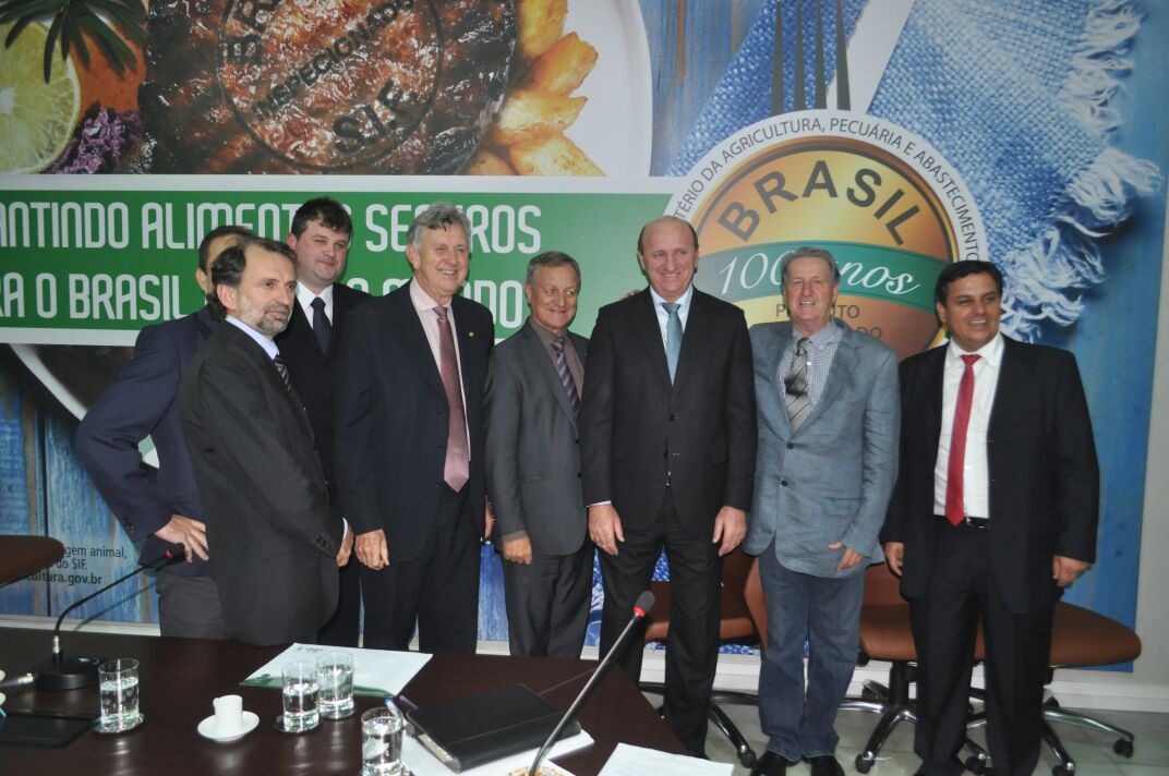 Moisés Lopes de Albuquerque – Diretor Executivo da ABPM, Deputados Federais Luis Carlos Heinze e Valdir Colatto com novo Secretário de Política Agrícola Neri Geller.