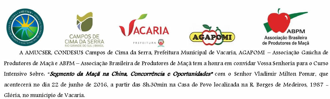 10 jun 22/06/2016 – Curso Intensivo sobre “Segmento da Maçã na China, Concorrência e Oportunidades”