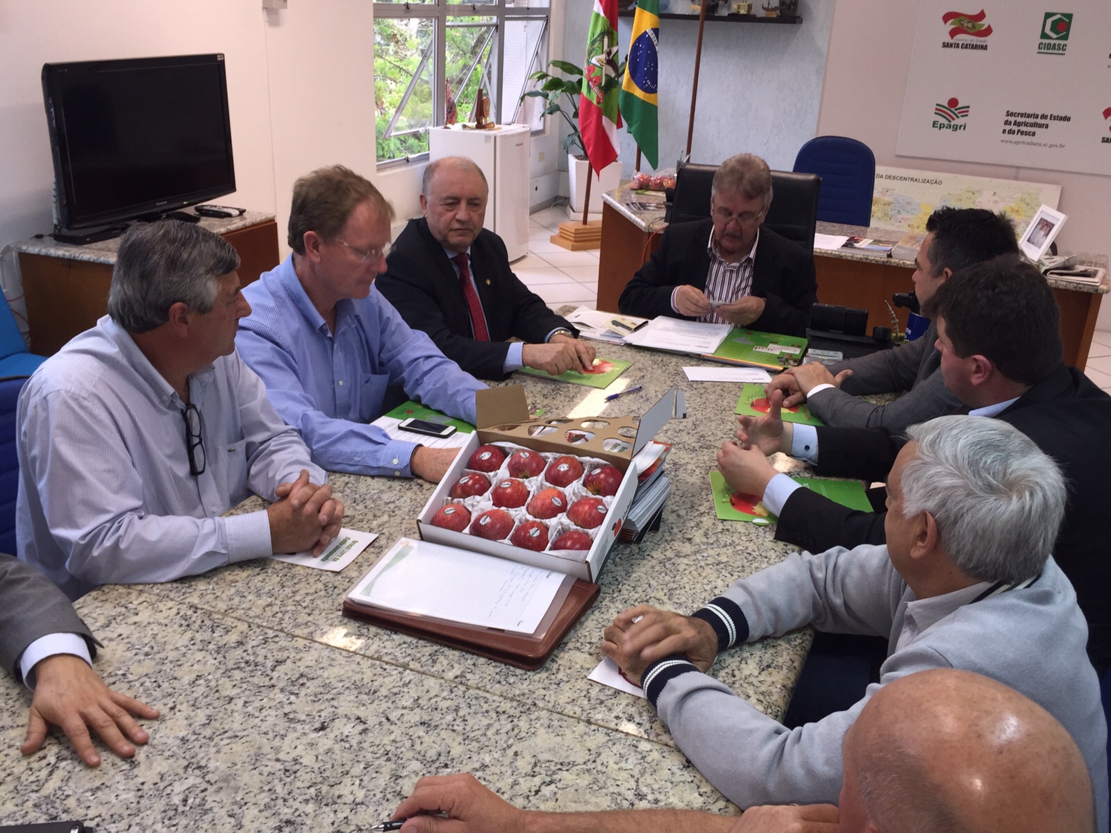 Para tratar das demandas do setor produtivo da Maçã, o Secretário da Agricultura e da Pesca de Santa Catarina, Moacir Sopelsa, recebeu representantes da ABPM, da Associação dos Produtores de Maçã e Pera de Santa Catarina (AMAP), e da Federação da Agricultura e Pecuária do Estado de Santa Catarina (Faesc), além dos Deputados Estaduais Catarinenses Natalino Lázare e Luiz Fernando Vampiro, na última quarta-feira (30) em Florianópolis.