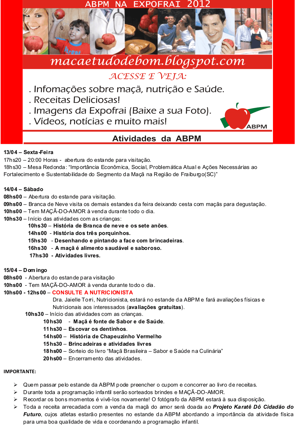 12 abr ABPM na Expofrai 2012 Postado às 03:05h em Maçã é tudo de bom por ABPM 0 Comentários 0 Curtidas Tags: Epagri, Eventos, Pesquisa e Tecnologia