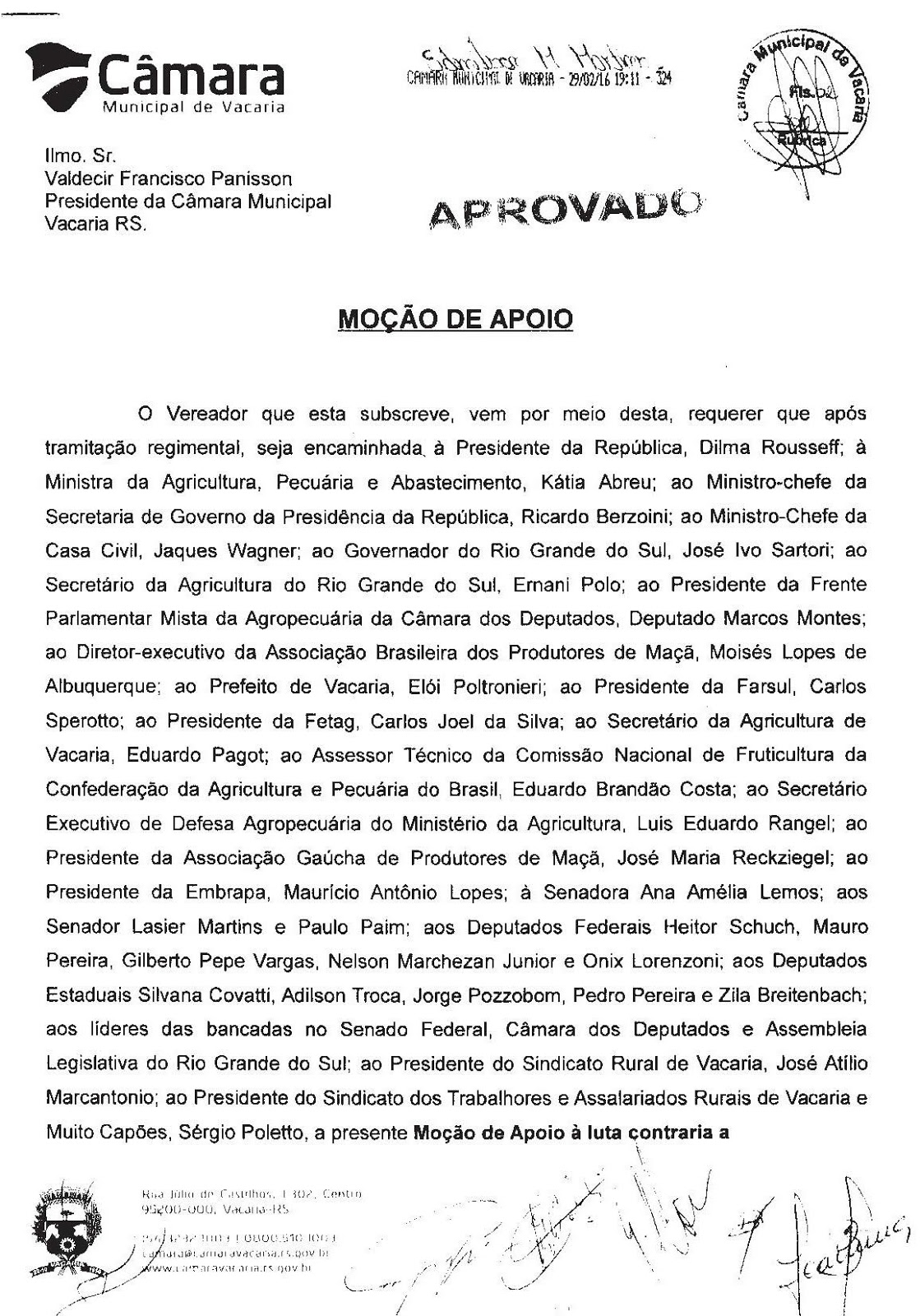 14 mar Câmara Municipal de Vacaria – RS aprova Moção em apoio ao Setor da Maçã, contra a importação de maçãs da China