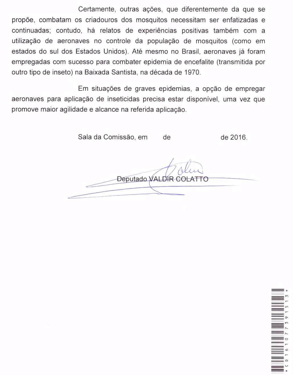 fumacê por via aérea, o deputado Valdir Colatto apresentou emenda à MP 712/2016,