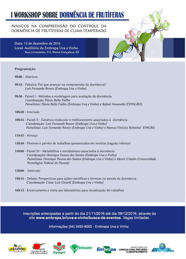 02 dez I WORKSHOP SOBRE DORMÊNCIA DE FRUTÍFERAS Postado às 18:48h em Maçã é tudo de bom por ABPM 0 Comentários 0 Curtidas Tags: Embrapa, Eventos