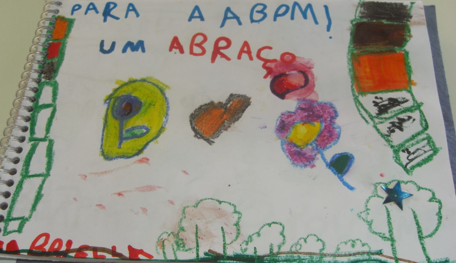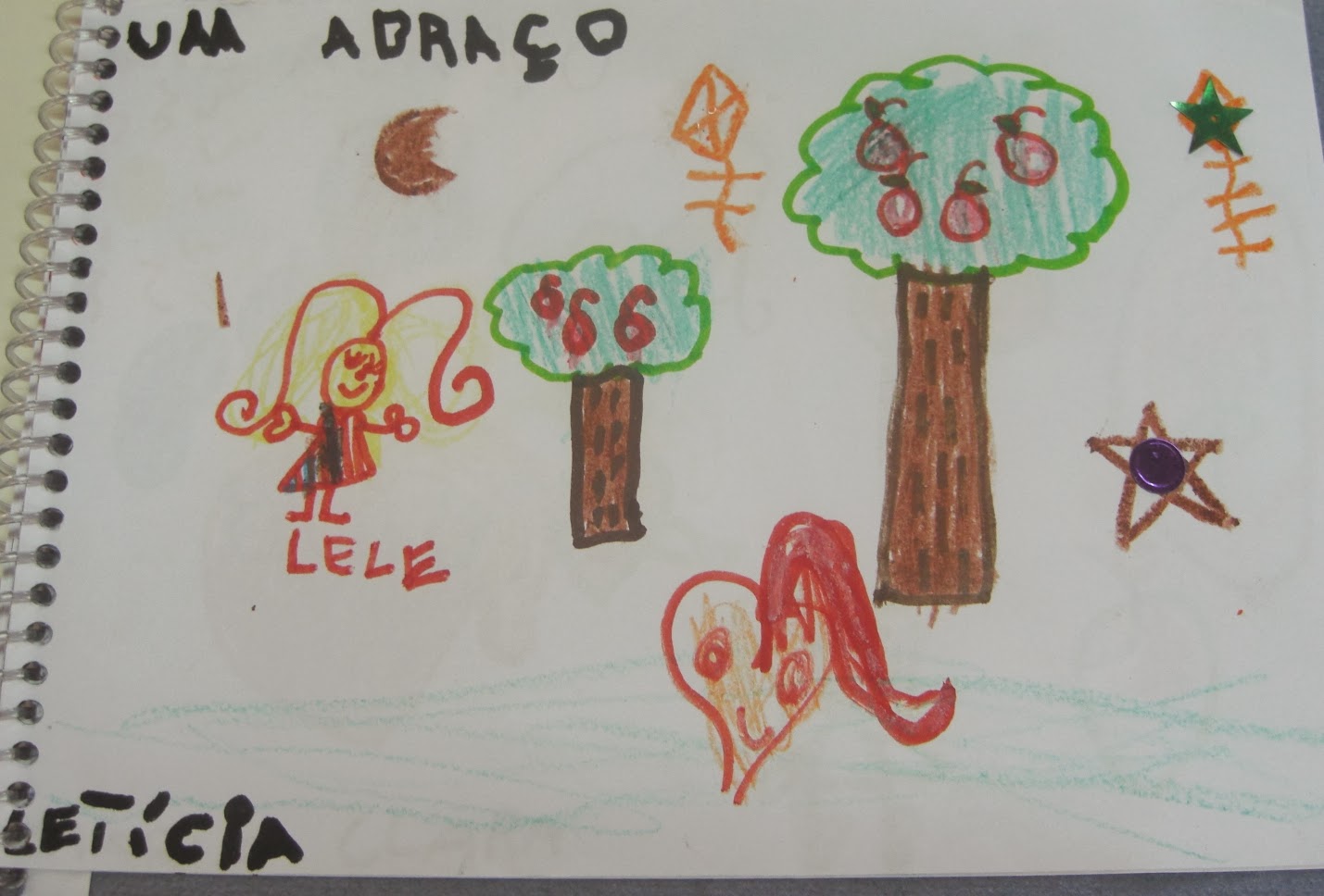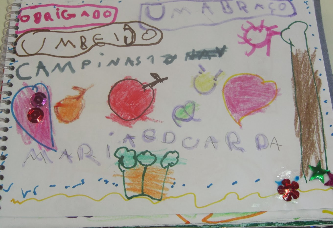 Essa semana recebemos o presente muito especial da Turma da Maçã (leia mais aqui). No pacote encontramos um livro com desenhos feitos pelos alunos com agradecimentos, beijos e abraços. Cada desenho nos encantou por um detalhe diferente e ficamos muito surpresos com tamanho gesto de carinho… Seguem abaixo os desenhos produzidos por eles: