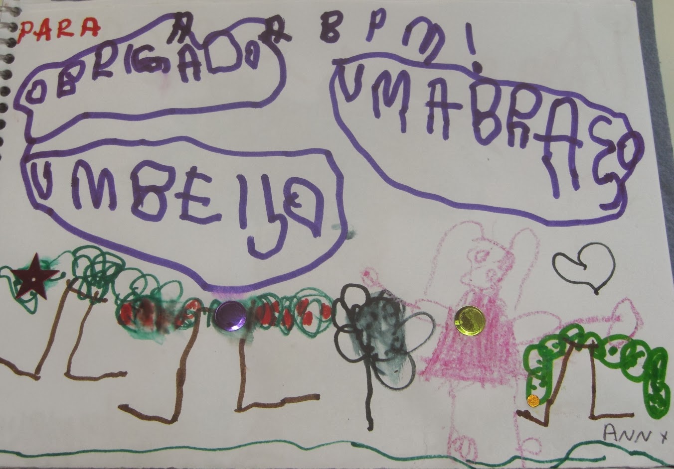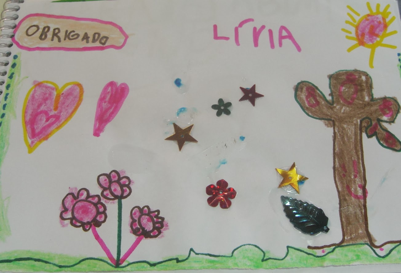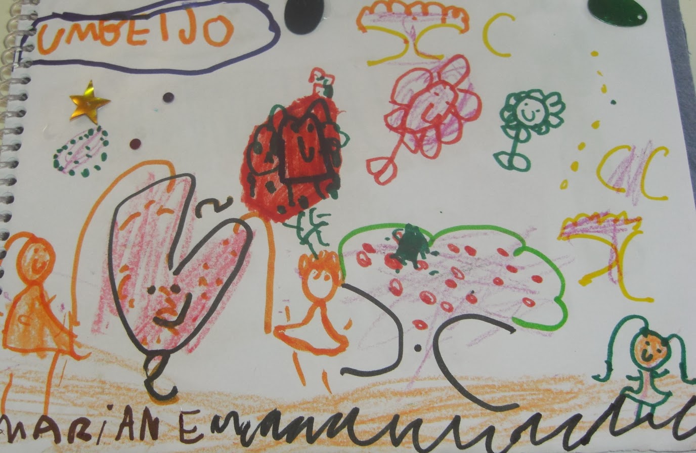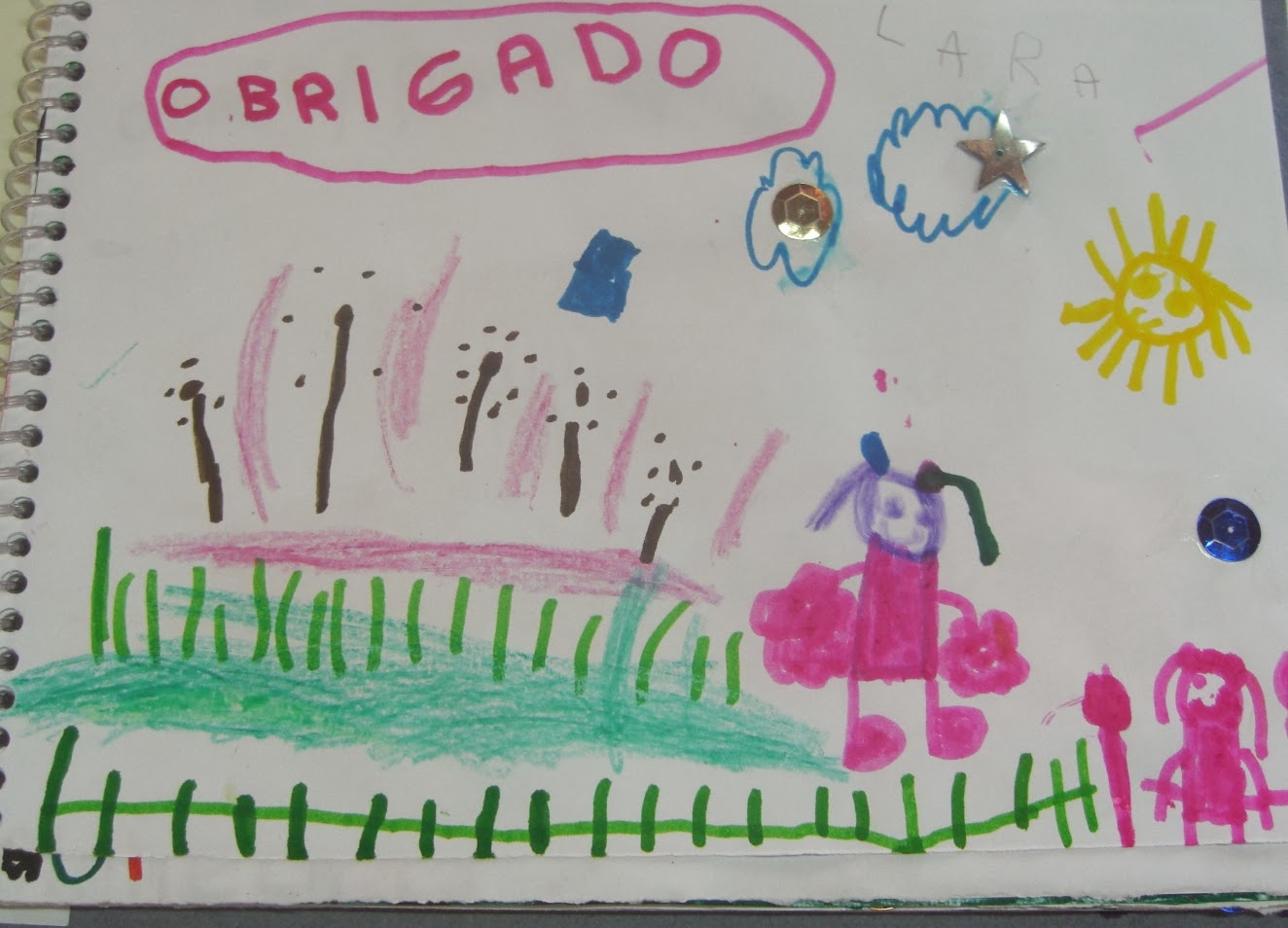 Essa semana recebemos o presente muito especial da Turma da Maçã (leia mais aqui). No pacote encontramos um livro com desenhos feitos pelos alunos com agradecimentos, beijos e abraços. Cada desenho nos encantou por um detalhe diferente e ficamos muito surpresos com tamanho gesto de carinho… Seguem abaixo os desenhos produzidos por eles: